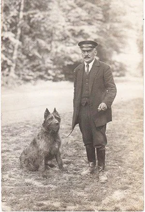 The monks at the Ter Duinen monastery were among the earliest known dog breeders in Flanders. The Bouviers bred by them are recorded as having been bred from imports such as Irish Wolfhounds and Scottish Deerhounds with local farm dogs, until a breed considered to be the predecessor of the modern Bouvier des Flandres was obtained. This became a farmer’s dog with the ability to herd, guard cattle, and pull carts, and to withstand the local weather conditions due to its thick coat. However, they were not uniform in size, weight, in texture and color of coat, nor in the shape of the head. There were basically two types. The Bouvier des Roulers, a large, wiry black dog with a deep chest, ranged in height to 27-1/2 inches with coats of black, brindle, or dark gray. The Paret style was not quite as tall, ranging from 22-1/2 to 24-1/2 inches, with colors ranging from true fawn to sorrel, charcoal gray, and brindle. They were more barrel-chested with a coat which was not quite as wiry. These two types eventually developed into the Bouvier Belge des Flandres, recognized in 1910 by the Societe Royale St. Hubert, Belgium’s national kennel club. It was not until 1933, that registrations were made under the current name, Bouvier des Flanders.  These early Bouviers were used on farms to herd cattle. They worked, not by chasing, but by blocking and moving lead cows. Utilizing the strength and endurance of these animals to an even greater degree, the Bouvier became a draft animal, pulling milk and cheese carts, as well as turning millstones. In order to accommodate the harnesses worn by the dogs and to prevent injury to tails, the farmers docked the dog’s tails shortly after whelping. Because non-working dogs at that time were taxed, the Bouviers ears were cropped.